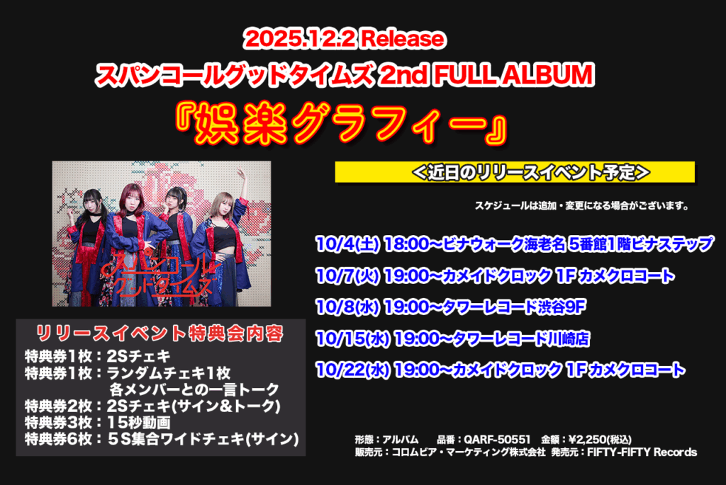 2nd FULL ALBUM『娯楽グラフィー』リリースイベント開催について