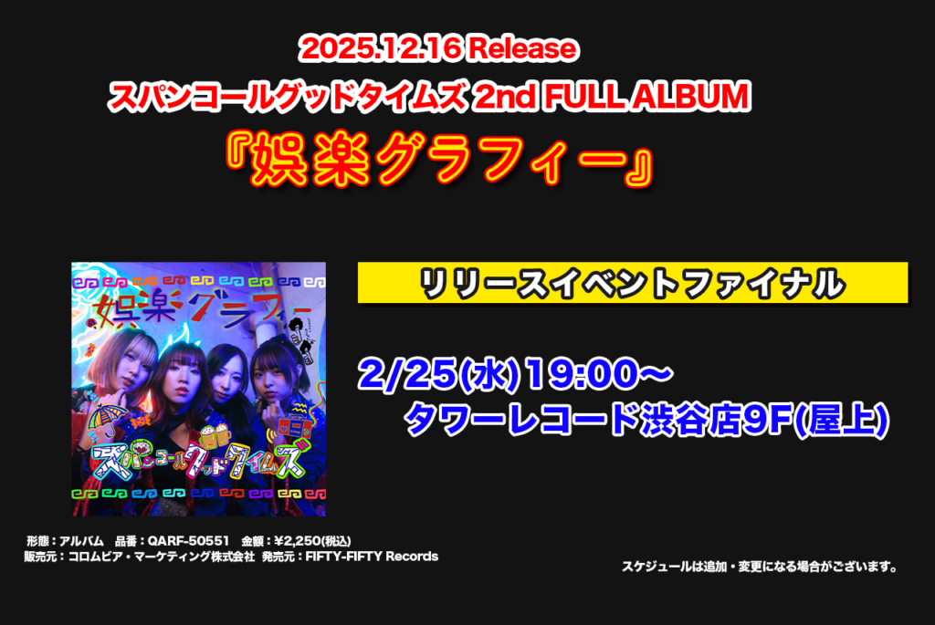 2nd FULL ALBUM『娯楽グラフィー』リリースイベント開催について