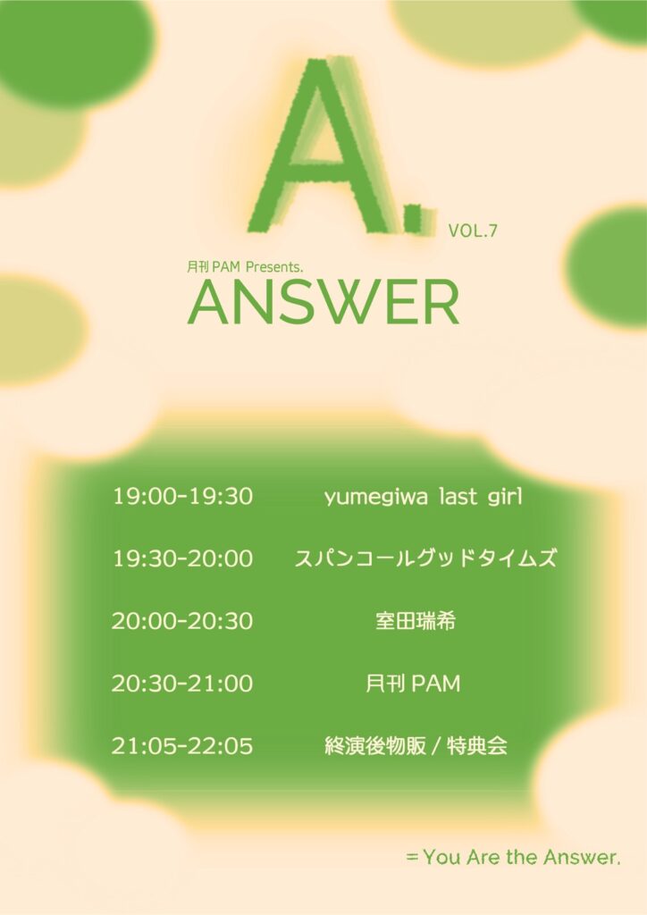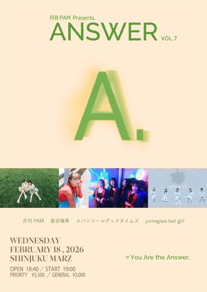 開催日 2026年02月18日 OPEN 18:40 START 19:00 開催場所 新宿MARZ チケット https://t-dv.com/answer7