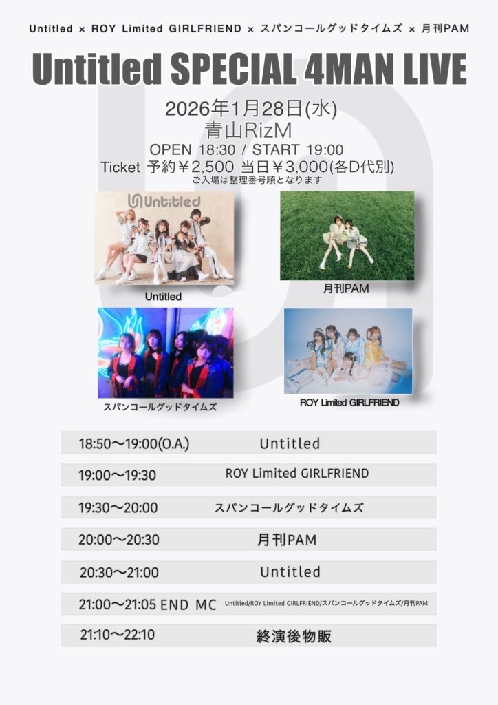 開催日 2026年01月28日 OPEN 18:30 START 19:00 開催場所 青山RiZM チケット https://tiget.net/events/459378 - 2026年01月31日