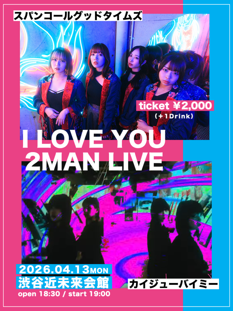 開催日 2026年04月13日 OPEN 18:30 START 19:00 開催場所 渋谷近未来会館 チケット https://livepocket.jp/e/0s4k1s3k - 2026年04月18日